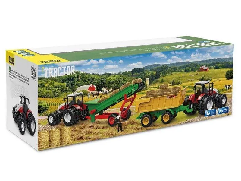 Радиоуправляемый фермерский трактор Korody с прицепом транспортером, двойные колеса 1/24 2.4G 6CH RTR