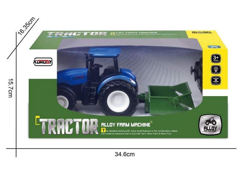 Трактор двигается вперед, назад, способен повернуть налево и направо, включить/выключить свет, а также включается демонстрационный режим. К тракторам Korody легко прицепляется навесное оборудование, чтобы показать детям, как возделываются поля и выращиваются сельскохозяйственные продукты. Трактор имеет в комплекте самосвальный кузов. Кузов легко снимается и может перемещаться самостоятельно.