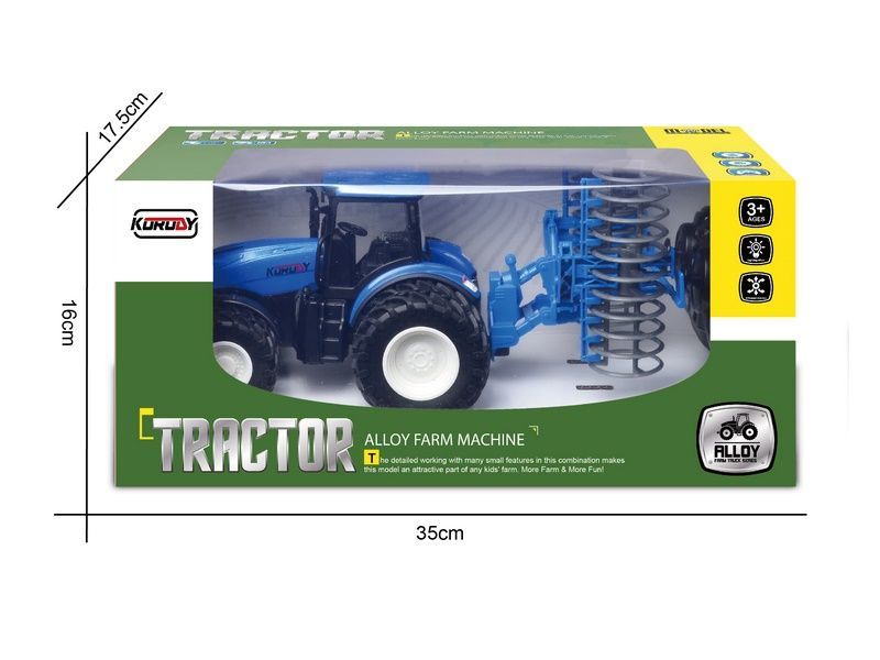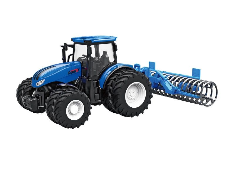 Трактор двигается вперед, назад, способен повернуть налево и направо, включить/выключить свет, а также включается демонстрационный режим. К тракторам Korody легко прицепляется навесное оборудование, чтобы показать детям, как возделываются поля и выращиваются сельскохозяйственные продукты. Трактор имеет в комплекте сеноподборщик. Сеноподборщик легко снимается и может перемещаться самостоятельно.