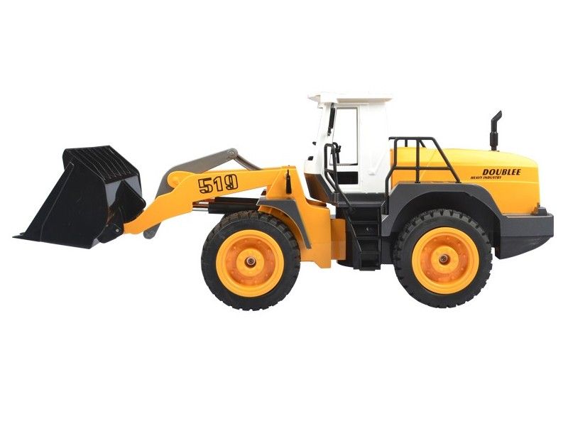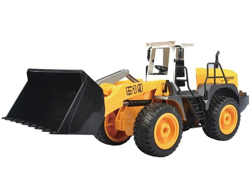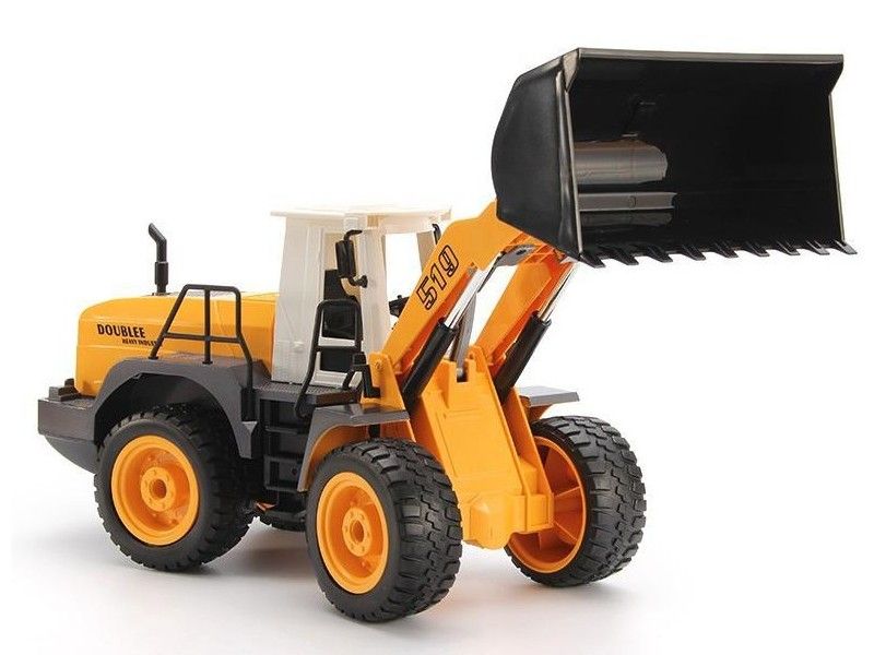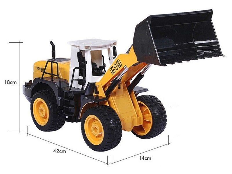 Модель способна поднимать незначительные тяжести за счёт своего ковша, который оборудован электроприводом. Бульдозер имеет строительный желтый стиль.