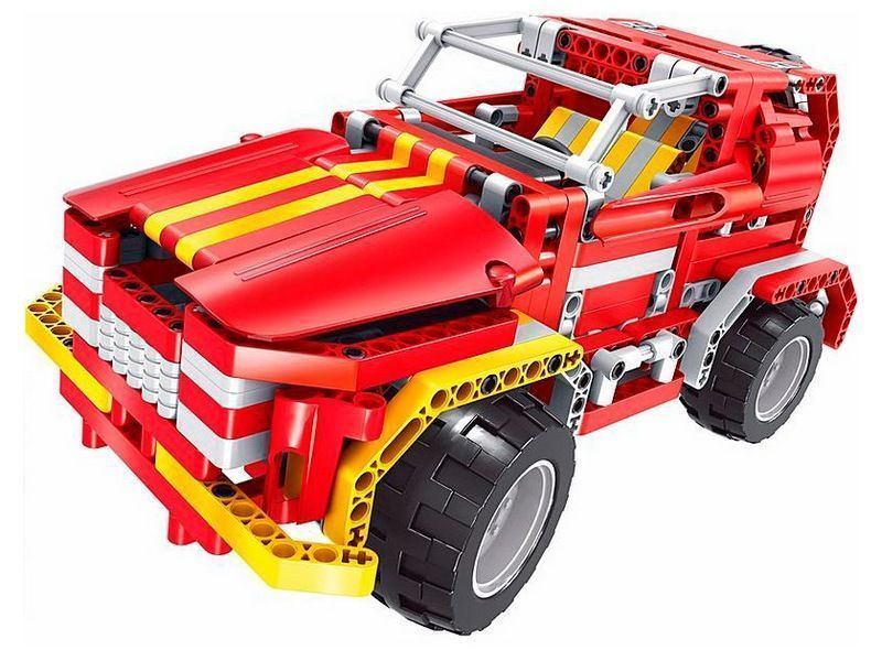 Автомобиль может двигаться во всех направлениях, управляемый с пульта. Наличие подвижных элементов в собранных конструкциях сделает игру более интересной. Мягкие резиновые колеса пройдут уверенно заданный маршрут. Набор прекрасно подходит для сюжетно-ролевых игр.