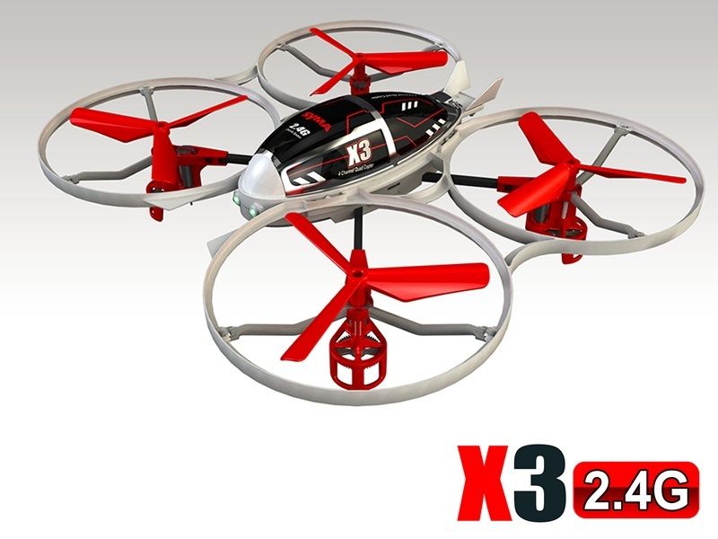 Последний 4-осевой квадрокоптер X3 Syma. Ультра легкий вес, прочный каркас, простота управления и устойчивость к повреждениям. Он может летать в помещении и на открытом воздухе при не сильном ветре. Способен двигаться во всех направлениях полета: вверх/вниз, вперед/назад, влево/вправо, вращение. Кроме обычных летающих движений, Syma X3 способен выполнять переворот на 3600.