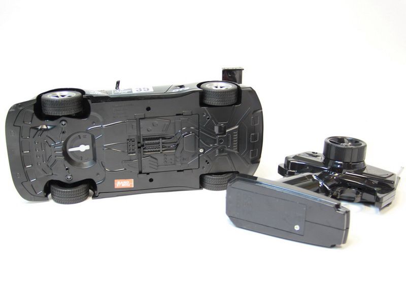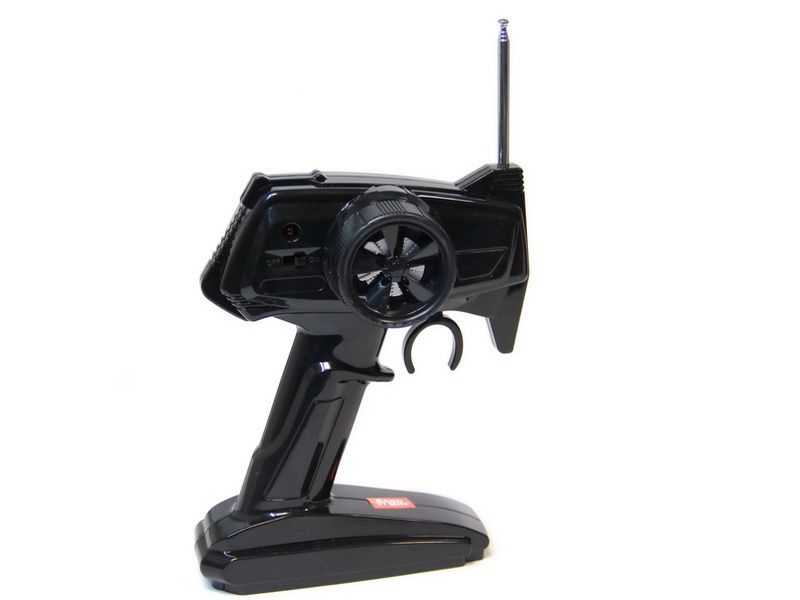 Машинка работает от аккумулятора, который поставляется в комплекте. Ещё в наборе находятся зарядное устройство и инструкция. Управление максимально простое, с помощью рулевого колеса на пульте регулируется поворот передних колёс, а «газ» осуществляется с помощью нажатия на специальный курок. Другой важной особенностью являются работающие фары, причём, при езде вперёд работают передние, а если поехать назад, то загорятся габаритные огни. Управляется машинка с пульта на мегагерецовой частоте, что обеспечивает дальность сигнала до 30 метров.