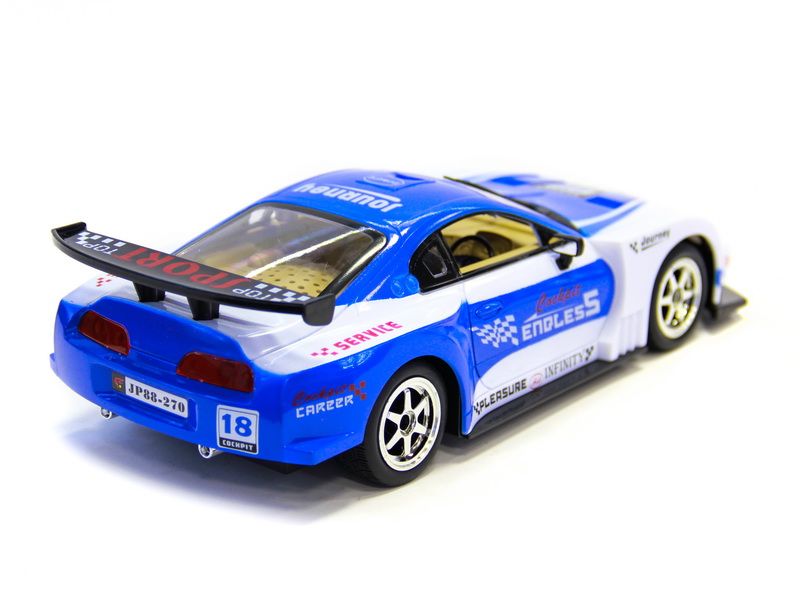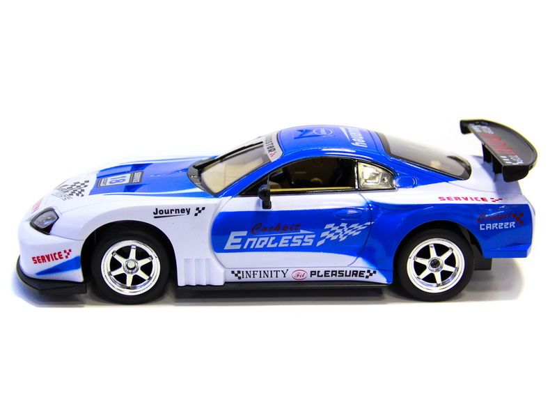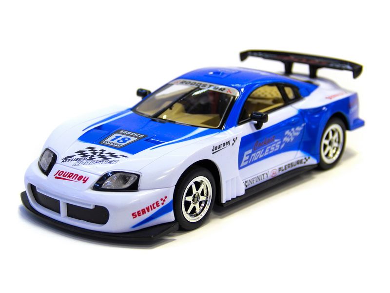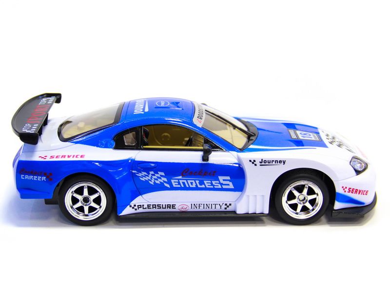 Радиоуправляемый автомобиль 613-10 – это копия автомобиля Toyota Supra. Автомобиль может двигаться во всех направления, а передние колеса автоматически возвращаются в нейтральное положение. Удобный пульт поможет справиться с управлением автомобилем даже ребенку. Для большей реалистичности фары и габаритные огни авто имеют подсветку, а в салоне автомобиля звучит музыка.