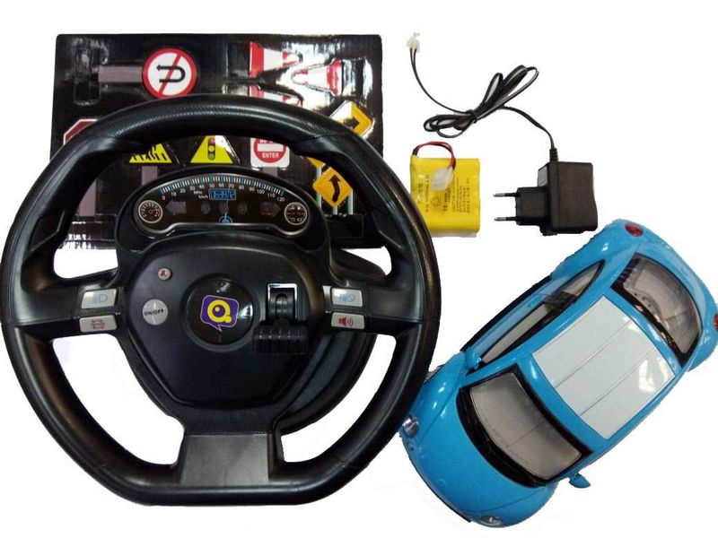 машинка HQ667 пульт управления в виде руля аккумулятор NiMH 300mAh зарядное устройство конусы и дорожные знаки 4 батарейки типа АА
