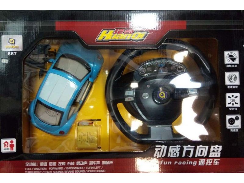 Радиоуправляемая машинка HQ667 для детей от 3-х лет. Пульт управления в виде руля позволяет машинке двигаться во всех направлениях: вперед, назад, повороты вправо/влево.