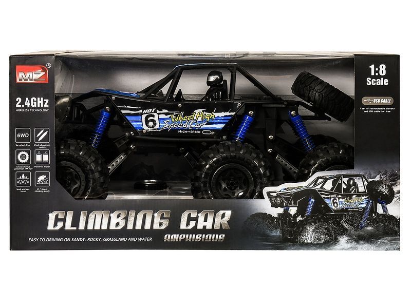 Радиоуправляемый краулер-амфибия MZ-2860 6WD 1:8 - это универсальный автомобиль, созданный лазить по камням и грязи, отличающийся высокими показателями проходимости трассы, проложенной на пересеченной местности и влагозащитой электроники. Автомобиль имеет металлическую кабину и усиленную раму жесткости. Движение осуществляется при помощи 6-ти довольно больших колес, оснащенных шинами с глубоким рисунком протектора.