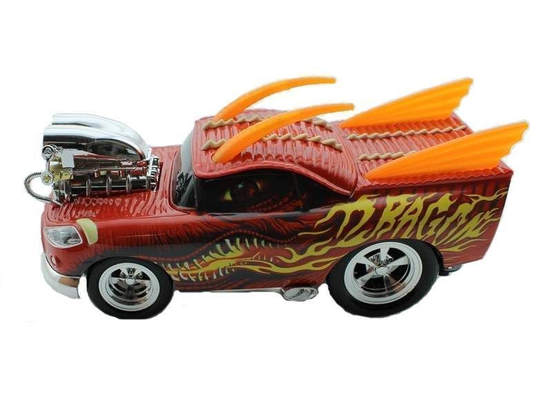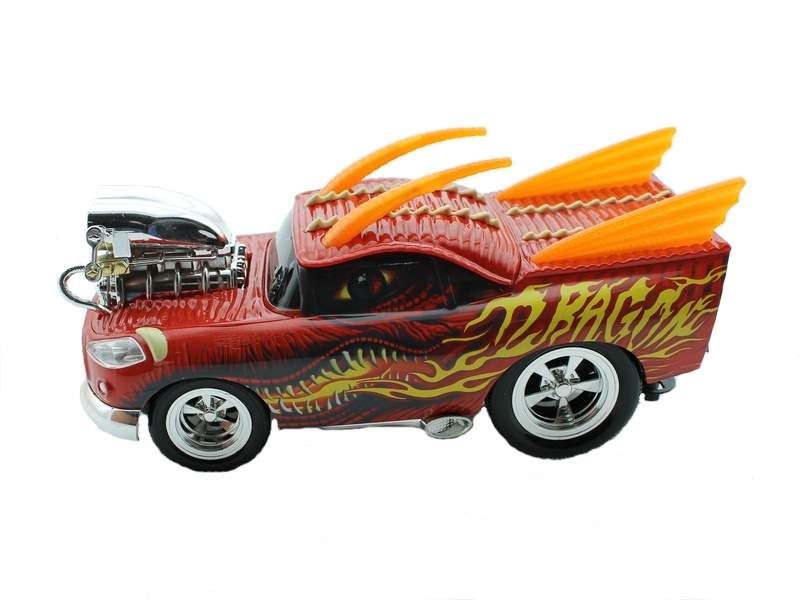 Автомобиль по дизайну напоминает Дракона, у которого светятся "усики" и "зубы". Спереди на капоте расположен гоночный мотор, который можно рассмотреть во всех подробностях. Кроме того машинка спереди оснащена огнями (свет фар). Два маленьких колеса спереди и два больших колеса сзади придает машине особый стиль. Машина имитирует четыре вида звука работающего двигателя и один звуковой сигнал.
