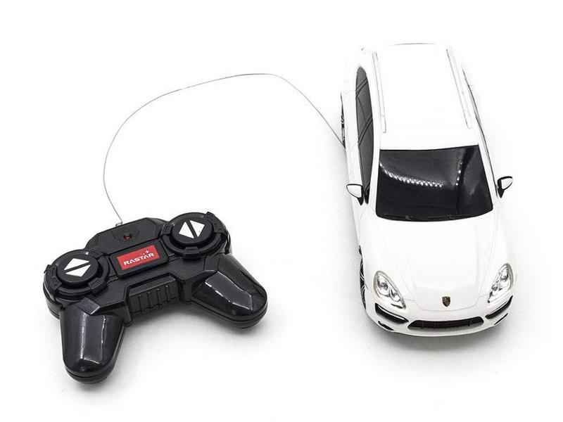 Радиоуправляемая модель машинки Porsche Cayenne Turbo от бренда Rastar. Машинка выполнена в масштабе 1:24. Изготовлена из пластмассы — модель является точной копий оригинального автомобиля. Машинка может выполнить движение во все стороны. Дальность управления осуществляется на расстоянии от 15 до 45 метров. Максимальная скорость может развиваться до 7 км/ч. Есть возможность включения фар.