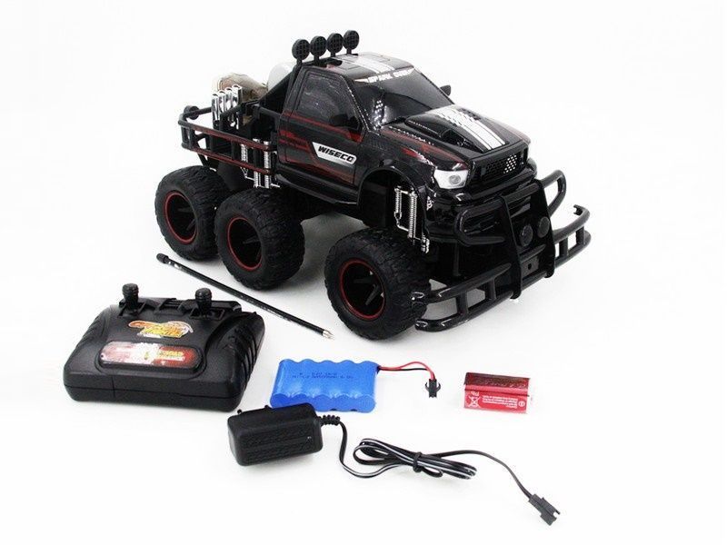 Радиоуправляемый гоночный джип отличается очень интересным дизайном – в виде крутого внедорожника. Предназначен для гонок как на ровных поверхностях, так и по бездорожью. 6 огромных резиновых колес с глубокими протекторами предают данной модели устойчивость на дорогах и полный контроль. Корпус выполнен из ударопрочного ABS пластика. Впереди присутствует имитация бампера безопасности. Машинка работает от аккумулятора 6V, пульт – крона 9V.