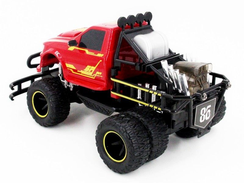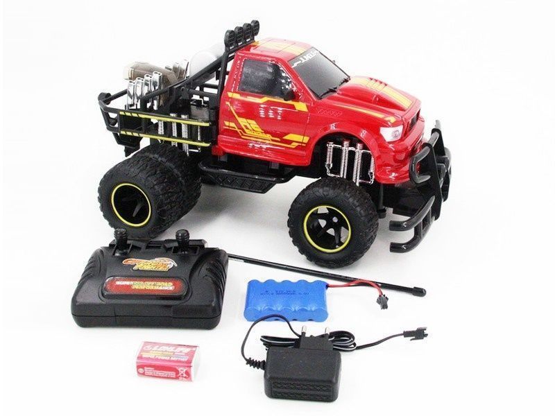 Радиоуправляемый гоночный джип отличается очень интересным дизайном – в виде крутого внедорожника. Предназначен для гонок как на ровных поверхностях, так и по бездорожью. 6 огромных резиновых колес с глубокими протекторами предают данной модели устойчивость на дорогах и полный контроль. Корпус выполнен из ударопрочного ABS пластика. Впереди присутствует имитация бампера безопасности. Машинка работает от аккумулятора 6V, пульт – крона 9V.