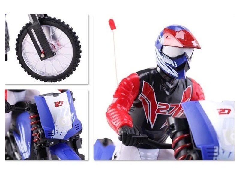 Мотоцикл выполнен в масштабе 1:10, оснащён колёсами с кроссовыми покрышками, передней вилкой