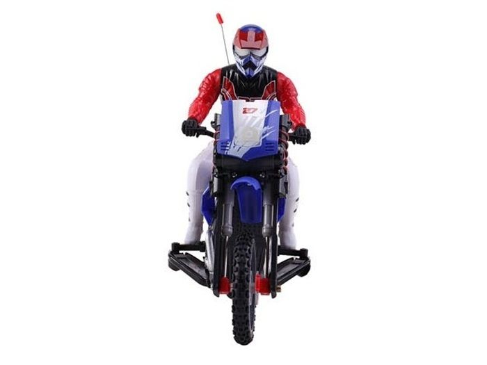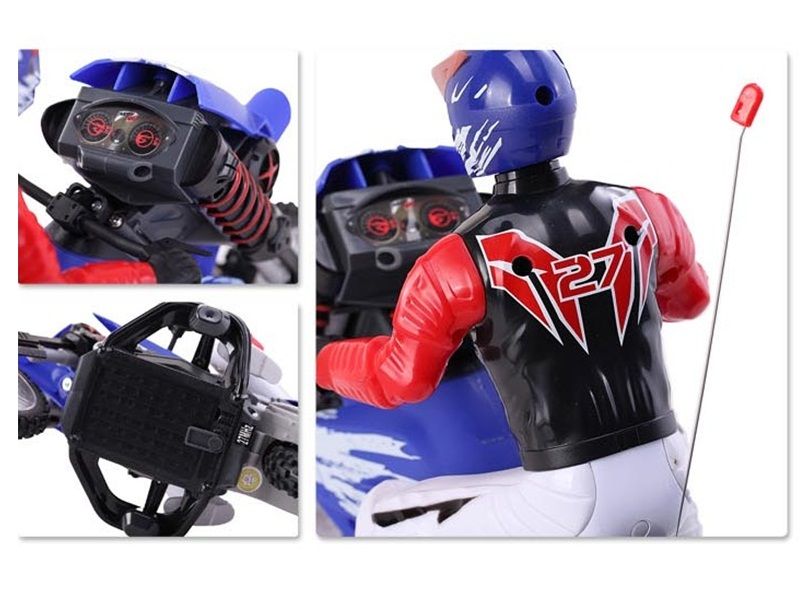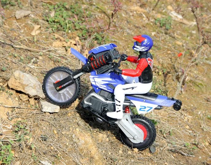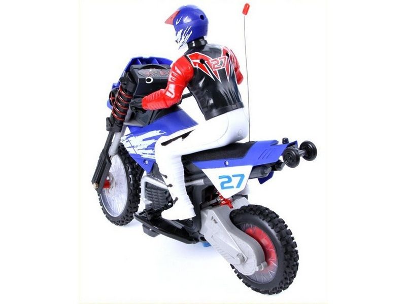 Игрушка оснащёна амортизаторами и передней пневмоподвеской, что позволяет мотоциклу выполнять акробатические трюки: ездить на заднем колесе, совершать кувырок на 360 градусов. Мотоцикл на радиоуправлении очень стабилен благодаря встроенному гироскопу!