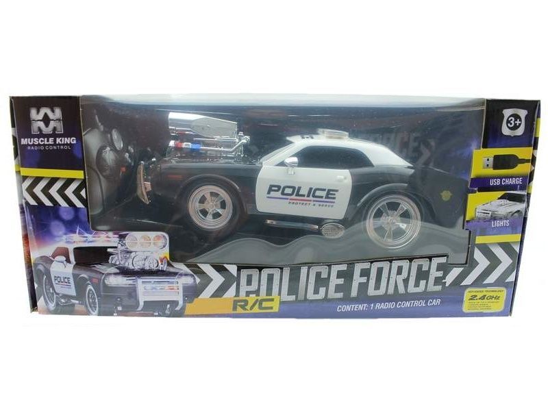 Р/У полицейская машина из серии "Muscle Сar" с гоночным Мотор. 1/16+свет+звук