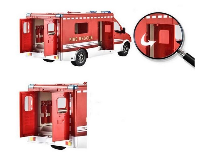 Радиоуправляемый пожарный фургон масштаб 1:18 – это реалистичная модель пожарной машины, управляя которой ребенок сможет ощутить все эмоции спасательной операции по тушению пожара. Все движения как во время настоящей спасательной операции. Дополнительная функция – машинка имеет световые эффекты - мигалку сине-красного цвета и звуковую пожарную сигнализацию. Кроме того, боковая и задние двери фургона открываются, поэтому с собой можно взять пожарную команду. В комплекте 2 огнетушителя и пожарная лестница. масштаб: 1/18 длина: 332 мм ширина: 114 мм высота: 130 мм пульт управления: 2.4GHz дальность действия пульта: 20 м аккумулятор: Ni-Cd 4.8V 400mAh время зарядки: 150 минут время игры: 20 минут USB зарядка пожарный фургон на радиоуправлении пульт управления 2.4Ггц аккумулятор Ni-Cd 4.8V 400mah и зарядное устройство 2 огнетушителя и пожарная лестница инструкция 2 батарейки (аккумулятора) типа AA для пульта управления