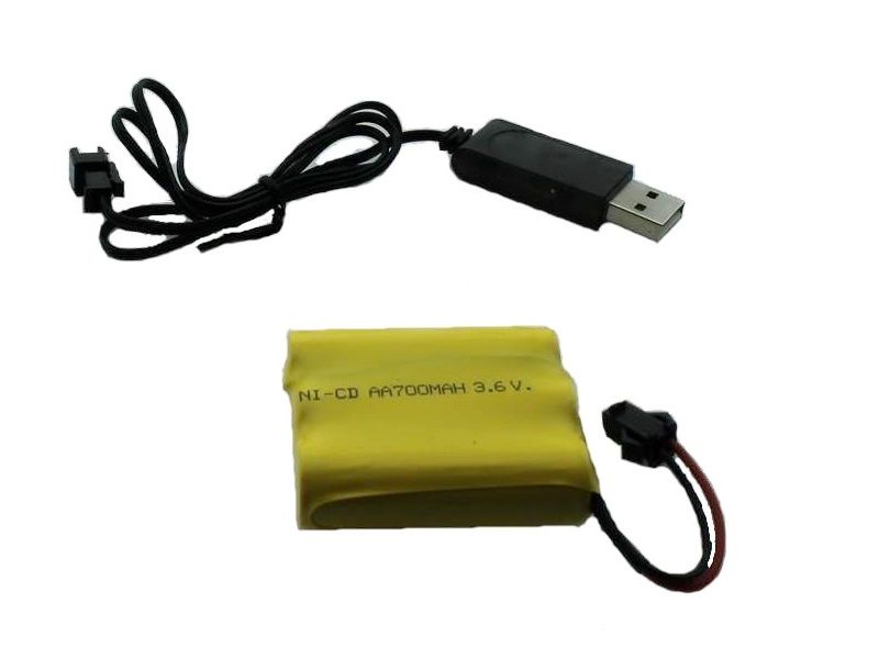 Машина работает от аккумулятора, который заряжается от USB, а пульт – от батареек.