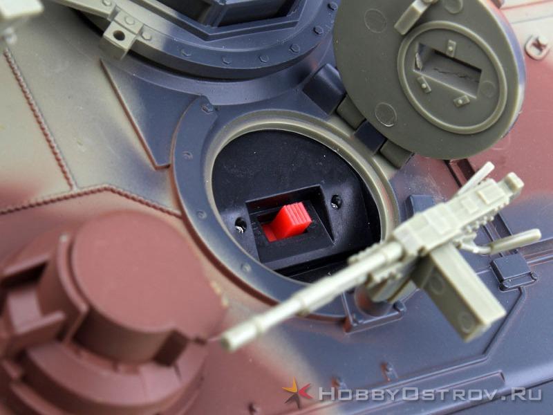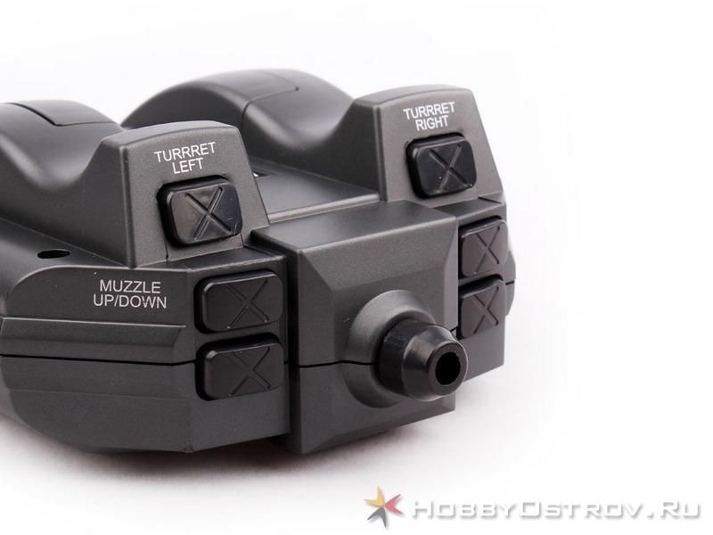 Движения: вперед (3 скорости), назад (2 скорости), развороты на месте (2 скорости), движение вперед/назад с поворотом (2 радиуса) Башня с механизмом поворота, вращение на 300 градусов Подъем/опускание ствола с амплитудой около 20 градусов Высокая проходимость по препятствиям Реалистичные звуки и движения танков - вздрагивание танка при старте под звуки запуска двигателя, откат танка при стрельбе, разворот танка и звук взрыва при попадании, звук стрельбы из пулемета при повороте башни и удержании кнопки стрельбы Отдельное управление каждой гусеницей, задний ход, управление поворотом башни Пневматическая пушка стреляет пластиковыми шариками длина: 330 мм ширина: 155 мм высота: 125 мм поворот башни: 3000 пульт управления: 27/40МГц полностью собранный танк пульт управления для танка NI-MH аккумулятор 7.2v 700mAh зарядное устройство для аккумулятора танка инструкция и транспортировочная коробка пластиковые шарики для пушки 3 батарейки размера АА для пульта управления