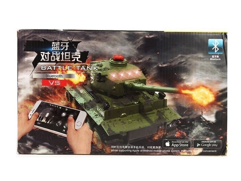 Управление при помощи смартфона через Bluetooth. Загрузите на свой телефон бесплатное приложение и окунитесь в мир танковых сражений! Башня танков способна вращаться на 180 градусов! Танк оснащен реалистичной моторикой и звуковыми эффектами Инфракрасная система ведения боя Танк может стрелять одиночными выстрелами или стрелять из пулемёта и одновременно поворачивать башню размер танка: 27.5 х 11.8 х 10.5 см аккумулятор: Ni-Cd 4.8V 400mAh способ зарядки: от USB кабеля (через USB порт мобильного или стационарного устройства) время зарядки: 2 часа время игры: около 10 мин дистанция управления: 5 м полностью собранный танк аккумулятор USB-зарядное устройство инструкция