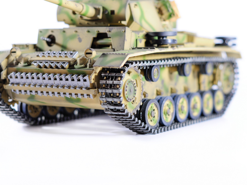 Радиоуправляемый танк Panzer III в масштабе 1:16 от компании Taigen - это полностью функциональная модель, имеющая высокий уровень детализации и металлические компоненты. Наиболее заметным является фантастическая ручная роспись корпуса, что делает каждый танк оригинальным.