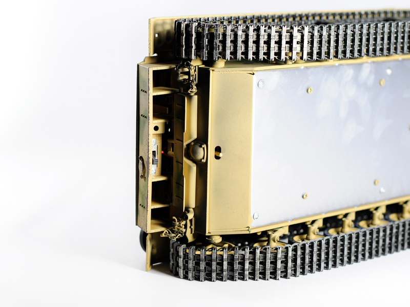 Включает металлические гусеницы, металлические редукторы, металлические звёздочка и ленивец, металлические опорные и поддерживающие катки, металлические шасси и амортизаторы, металлическое навесное оборудование. Это делает танк не только более надежным и долговечным, но и придает ему неповторимый внешний вид, а также открывает простор для дальнейшей модернизации.