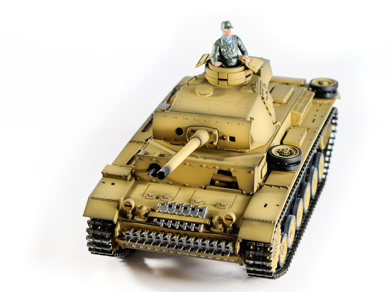 Р/У танк Taigen 1/16 Panzerkampfwagen III (Германия) дым, свет (для ИК боя) V3 2.4G RTR пустыня