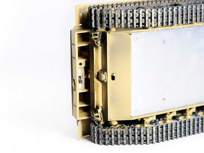 Включает металлические гусеницы, металлические редукторы, металлические звёздочка и ленивец, металлические опорные и поддерживающие катки, металлические шасси и амортизаторы, металлическое навесное оборудование. Это делает танк не только более надежным и долговечным, но и придает ему неповторимый внешний вид, а также открывает простор для дальнейшей модернизации.
