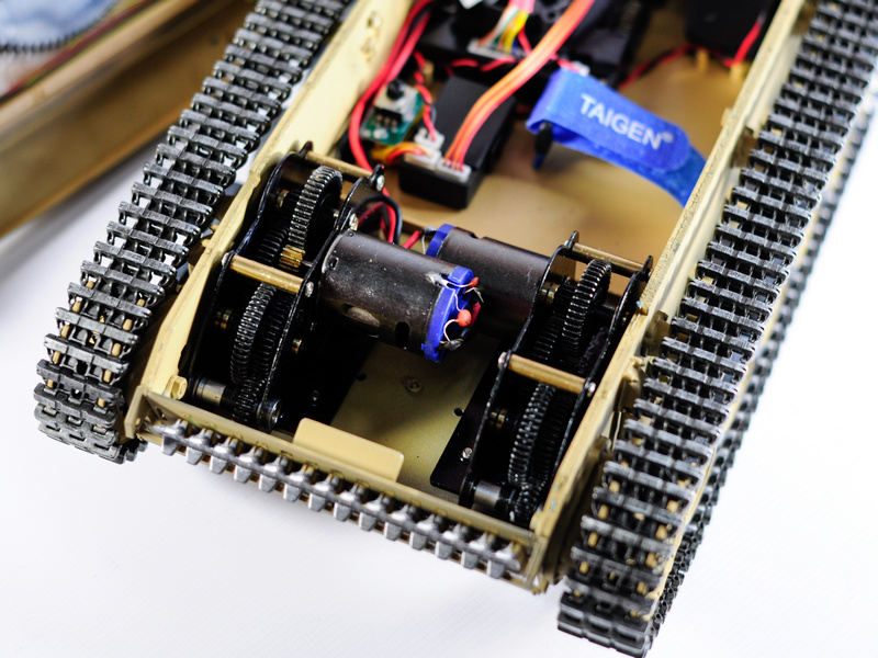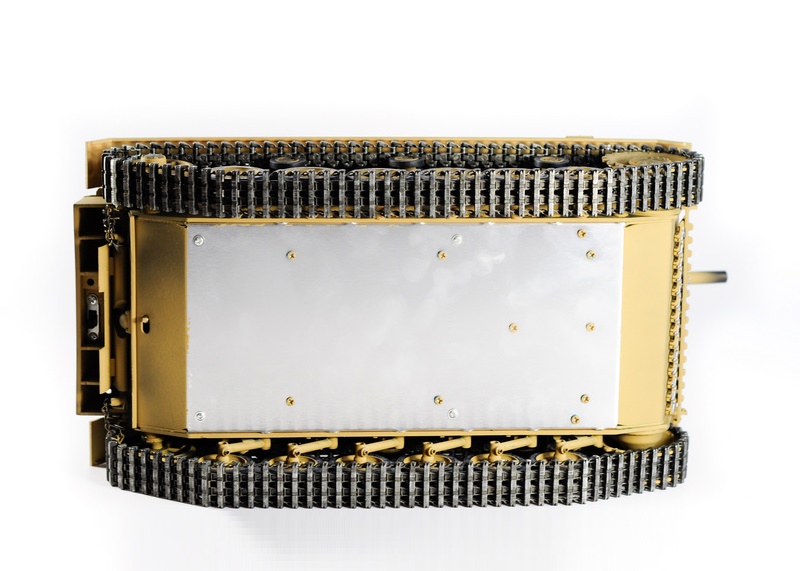 Включает металлические гусеницы, металлические редукторы, металлические звёздочка и ленивец, металлические опорные и поддерживающие катки с резиновым бандажом, металлические шасси и амортизаторы. Это делает танк не только более надежным и долговечным, но и придает ему неповторимый внешний вид, а также открывает простор для дальнейшей модернизации.