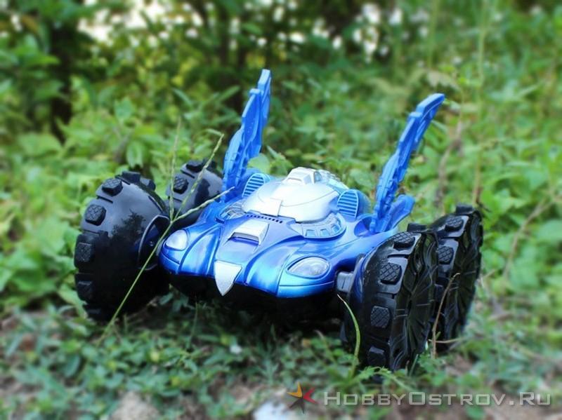 Необычная трюковая машинка-амфибия YE8881 умеет ездить не только по земле, но еще и плавать по воде. Она может легко выполнить крутое сальто и переворот вокруг своей оси. Движения амфибия может совершать в любом направлении без каких-либо ограничений. Яркости ей добавляют встроенные световые эффекты, которые делают игру еще интереснее и увлекательнее.
