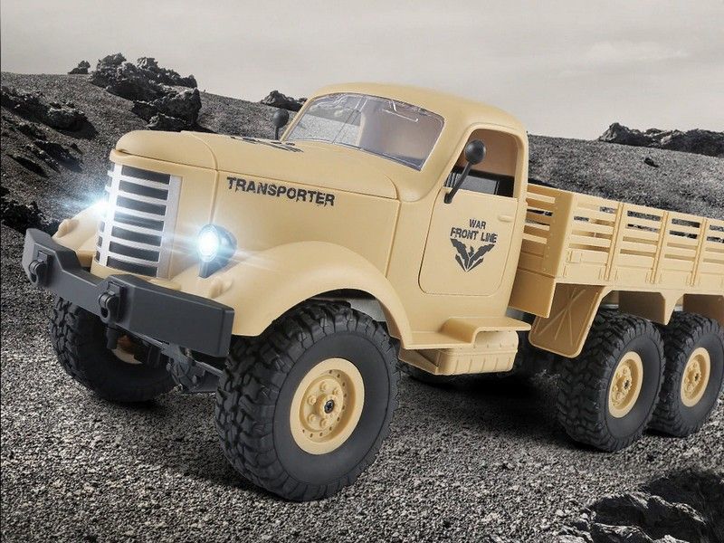 Радиоуправляемый военный грузовик JJRC Q60 имеет шестиколесную систему привода, которая обеспечивает отличное сцепление с любой поверхностью и помогает стабилизировать расположение шасси. Реалистичная листовая рессора эффективно поглощает удары при движении и обеспечивает устойчивое движение по бездорожью. Передние и задние дифференциалы помогают стабилизировать грузовик на поворотах.
