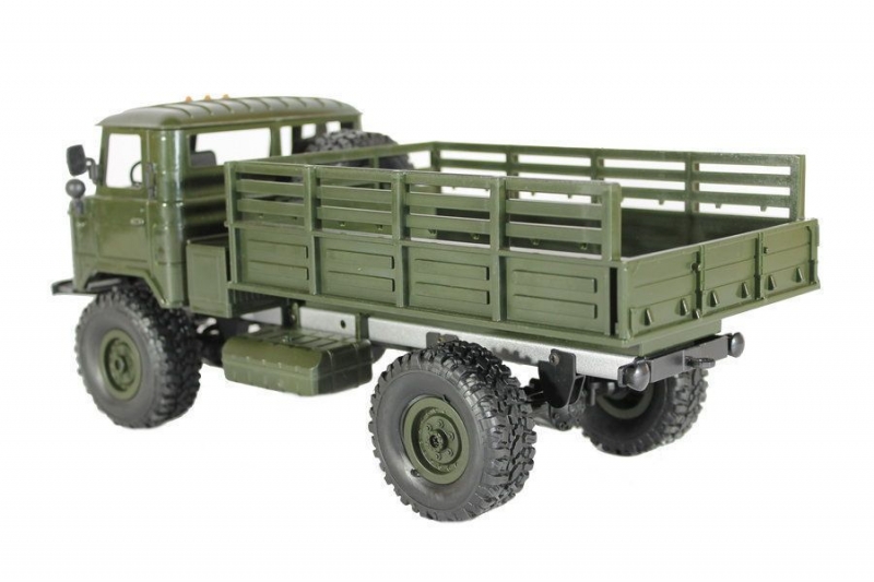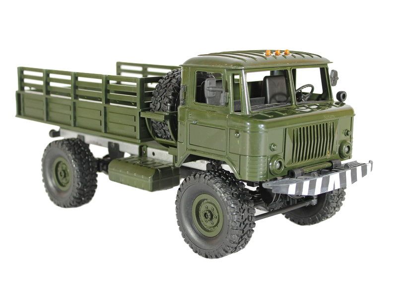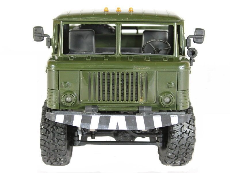Радиоуправляемая модель грузовика ГАЗ-66 масштаба 1:16 с постоянным полным приводом 4WD. Вместительный кузов позволяет нагружать его различными грузами. Износостойкие объёмные шины и высокий дорожный просвет обеспечивают прекрасное сцепление с различным видам поверхностей: песок, камни, горная дорога шоссе. Даже рельефы с резкими перепадами и неровностями (до 45 градусов) модель способна преодолевать без проблем. А включенные передние фары позволяют эксплуатировать модель в темное время суток.