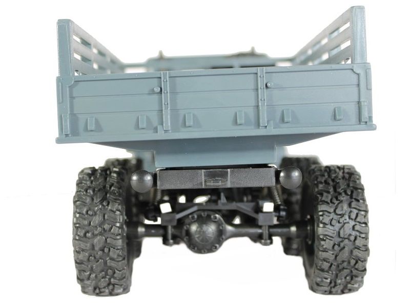 Радиоуправляемая модель военного грузовика масштаба 1:16 с постоянным полным приводом 6x6. Вместительный кузов позволяет нагружать его различными грузами. Износостойкие объёмные шины и высокий дорожный просвет обеспечивают прекрасное сцепление с различным видам поверхностей: песок, камни, горная дорога шоссе. Даже рельефы с резкими перепадами и неровностями (до 45 градусов) модель способна преодолевать без проблем. А включенные передние фары позволяют эксплуатировать модель в темное время суток.