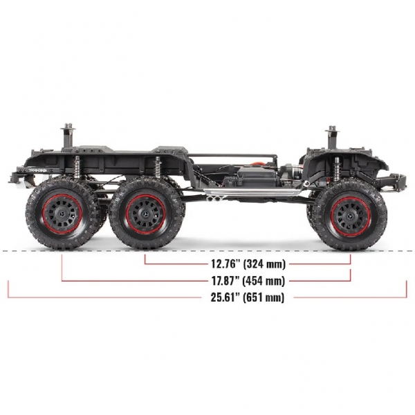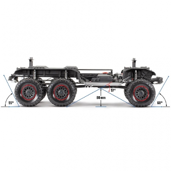 Эксклюзивные портальные оси от Traxxas обеспечивают огромный дорожный просвет! Чтобы добиться такого же клиренса с прямыми осями (и не застрять), ваши шины должны быть на 2,5 см выше, чем шины TRX-4. Шасси TRX-6 с портальными мостами с легкостью покорит заданную ему преграду оставляя позади всех остальных конкурентов.