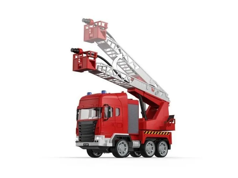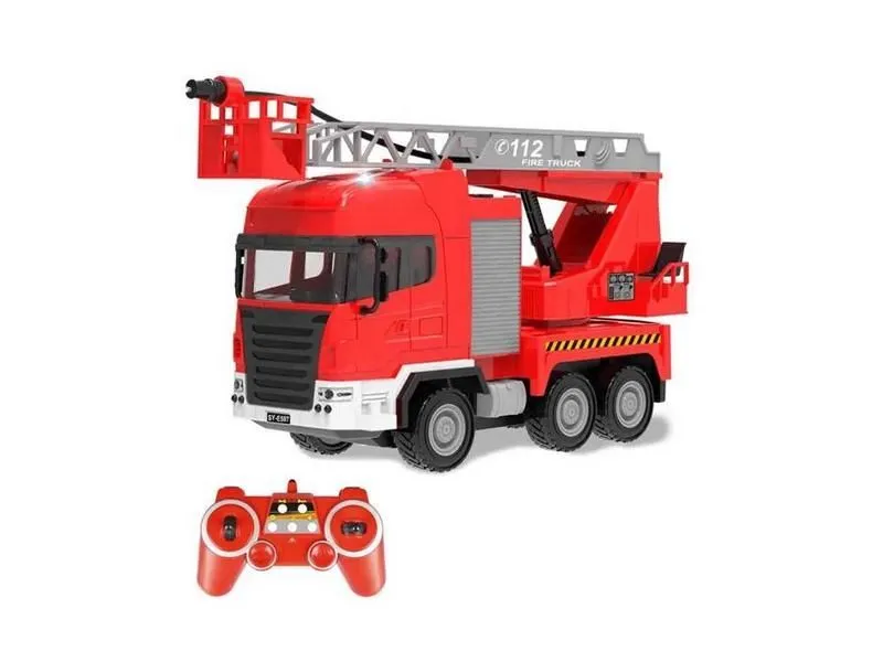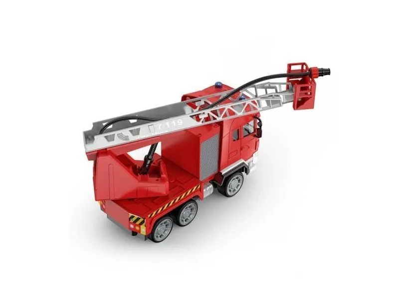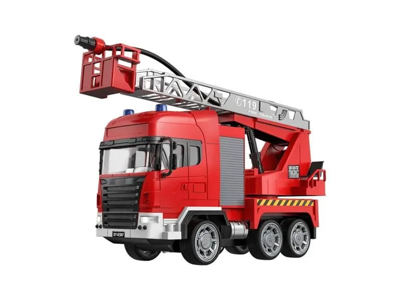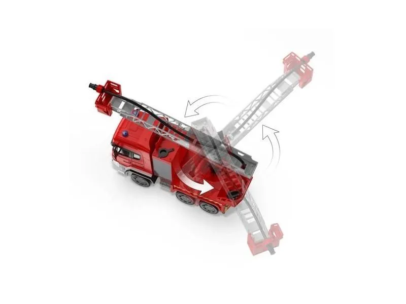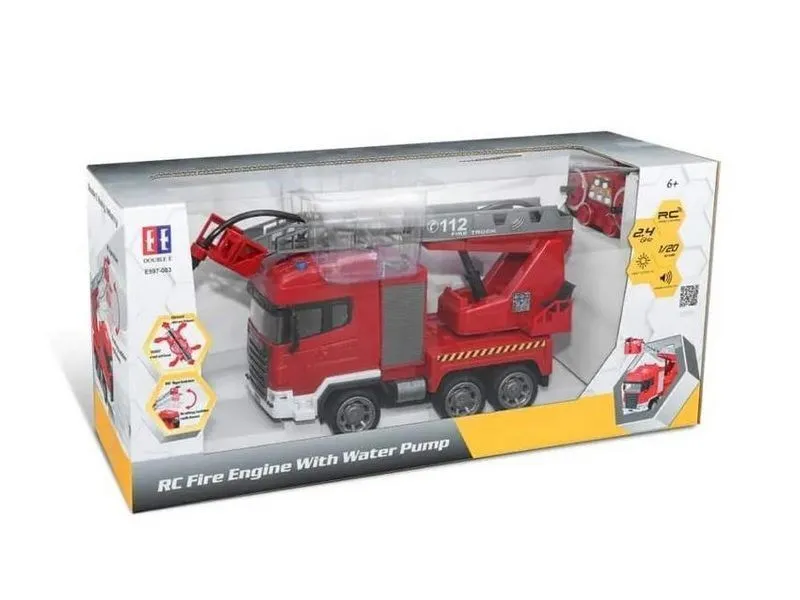 Радиоуправляемая пожарная машина от Double Eagle в масштабе 1:20. Машина движется во всех направлениях. Оснащена звуковыми и световыми эффектами. У машины есть полноценная водяная помпа для стрельбы водой на расстояние до двух метров.