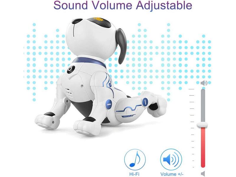 Собачка К16 способна выполнять голосовые функции. Нажав кнопку голосового режима, дайте устный приказ собаке. Она знает команды: встать на передние лапы, сидеть, стоять, лежать, отжиматься, двигаться вперед. Под динамическую музыку (4 музыкальные композиции) собачка танцует.