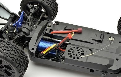 - Мощный бесколлекторный мотор 3421Kv и водостойкий регулятор скорости 45А