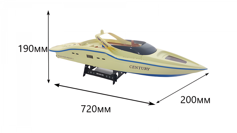 - Размер катера (Д х Ш х В): 72 х 20 х 19 см.