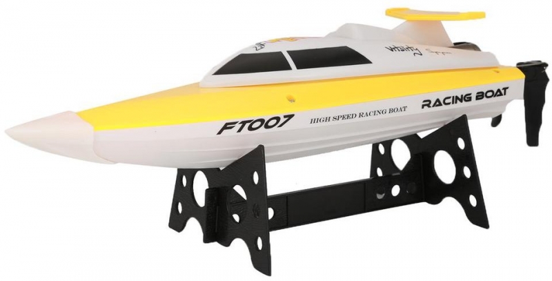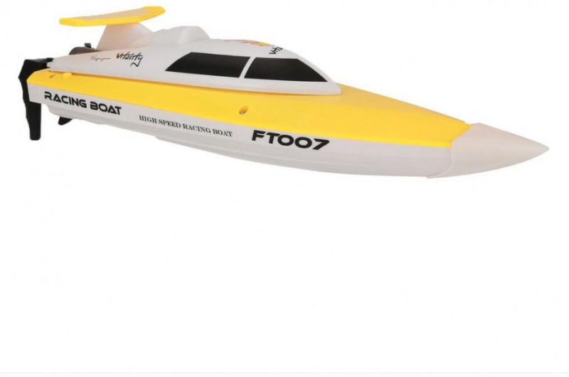 Сверхскоростной мини катер на радиоуправлении Racing Boat FT007 модельного класса. Помимо высокой скорости катер отличает полностью пропорциональное управление и наличие заднего хода. Возможность плавать и поворачивать как быстро, так и медленно позволит использовать любой водоем — от небольшого бассейна до открытого моря!Высокие технические характеристики катера дополняются качественной аппаратурой управления пистолетного типа с радиусом действия более 100 метров. Частота управления 2.4 ГГц позволяет плавать нескольким катерам рядом одновременно и устраивать гонки. Игрушка катер имеет сертификат сооветствия Ростест.
