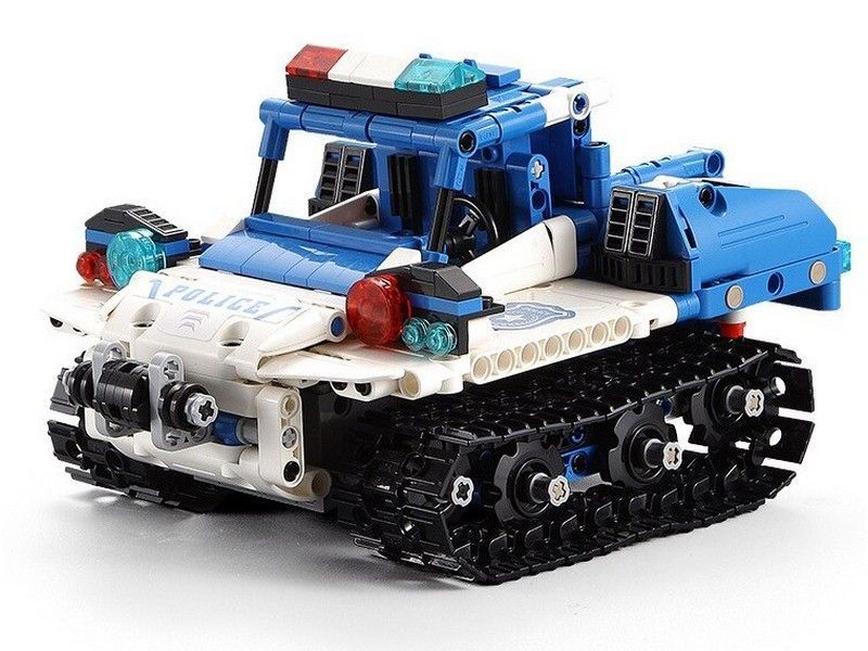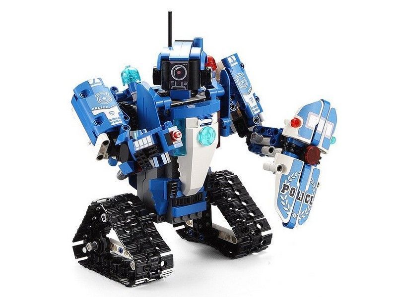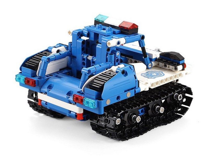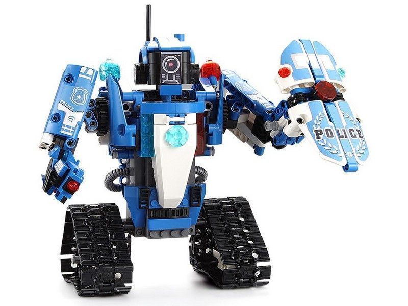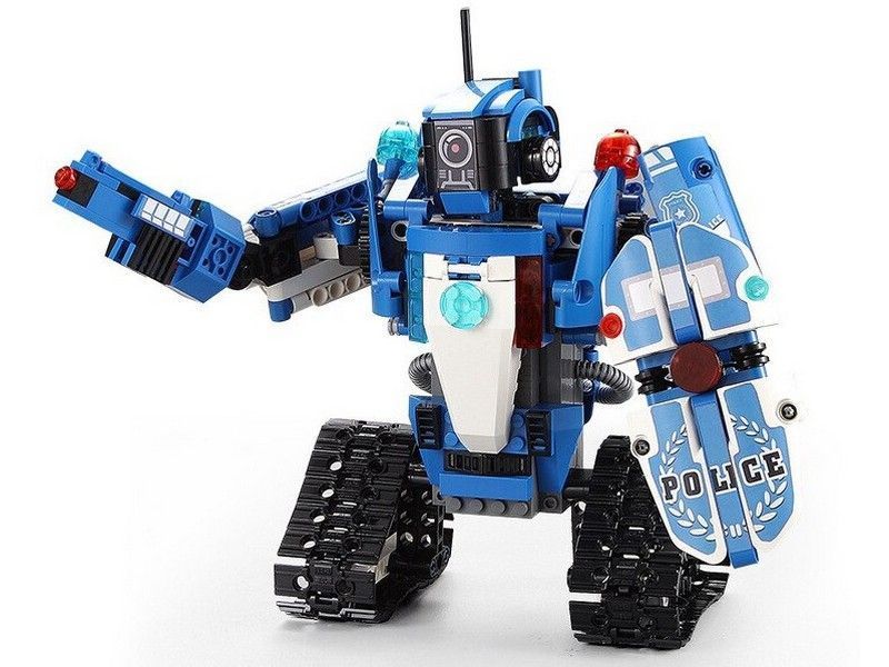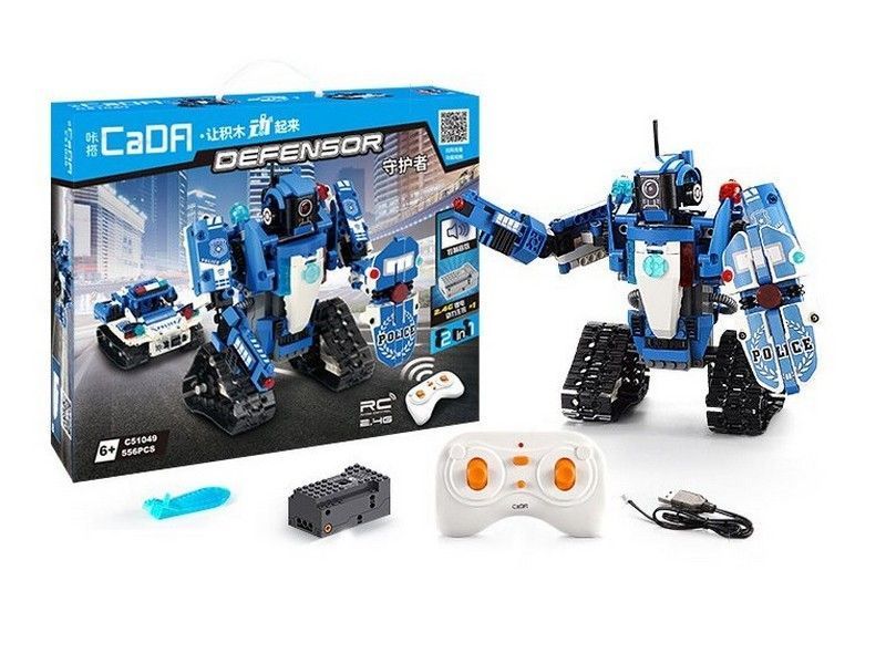 C51049W представляет собой набор 2 в 1 для постройки робота и полицейской машины на радиоуправлении и содержит 556 деталей! Робот-полицейский CaDa С51049W в собранном виде очень подвижный и маневренный, так же вращается голова и руки робота. Второй вариант сборки - полицейская машина. Помимо деталей корпуса и колес, в комплект входят 2 электродвигателя, приемник, аккумулятор 3.7В и все в одном блоке, и пульт! Детали в наборе отлично подогнаны друг к другу, поэтому сборка не вызовет трудностей, а собранная модель не развалится во время игры.
