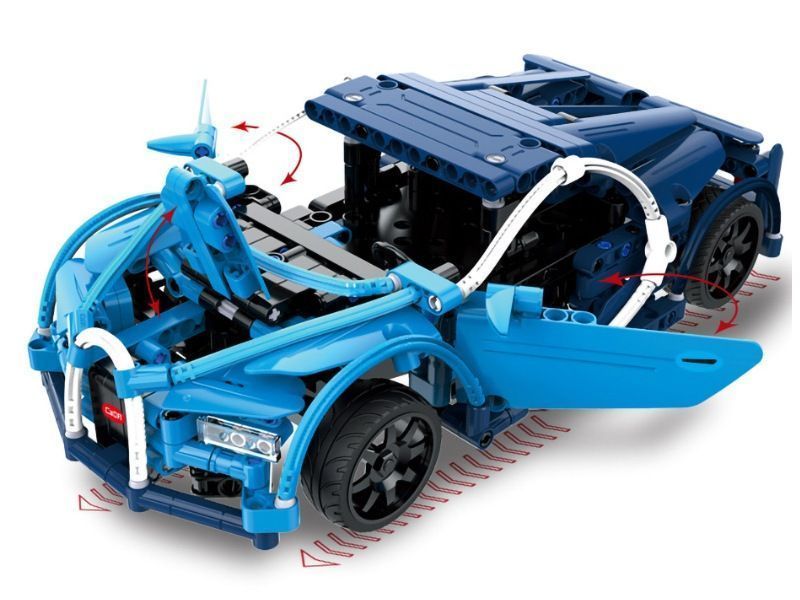 Детский конструктор CaDa Technic C51053W представляет собой набор для постройки красивого синего Bugatti на радиоуправлении и содержит 419 деталей! Помимо деталей корпуса, в комплект входят колеса, электродвигатель, плата управления, аккумулятор с зарядным устройством и пульт! Детали в наборе отлично подогнаны друг к другу, поэтому сборка не вызовет трудностей, а собранная машинка не развалится во время игры. У собранной модели открываются двери и капот.