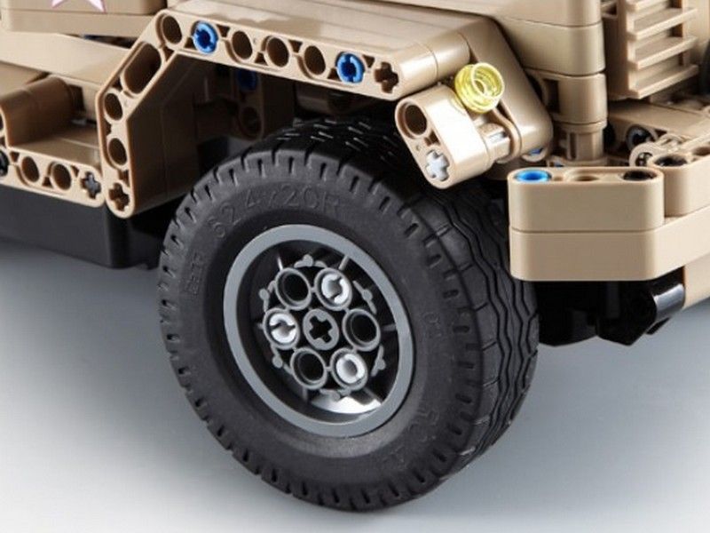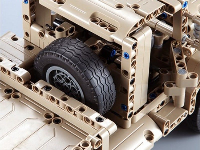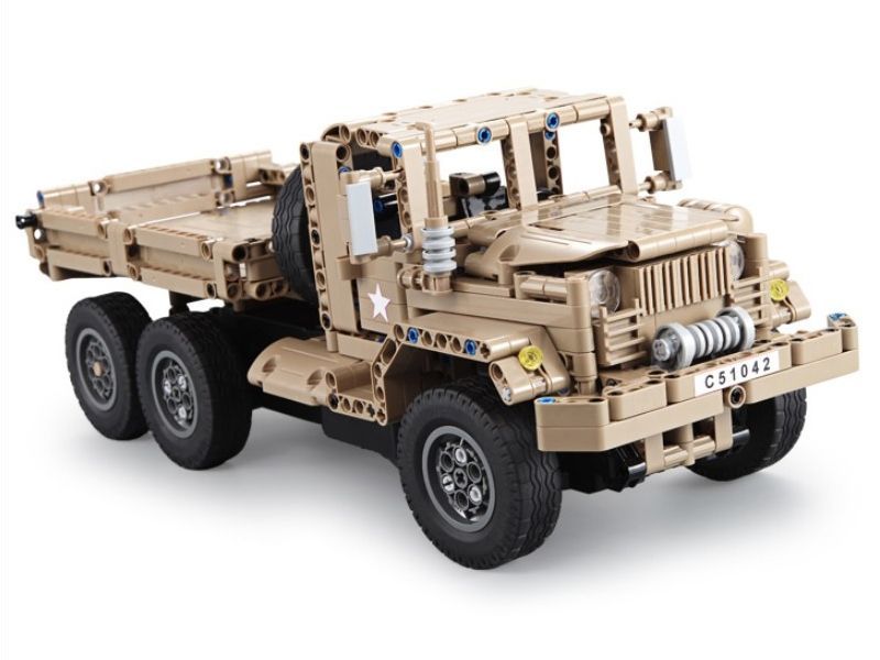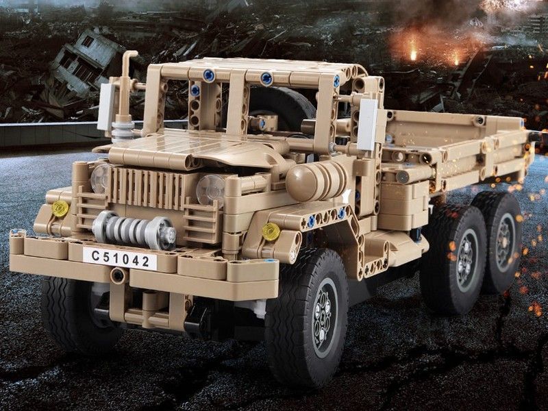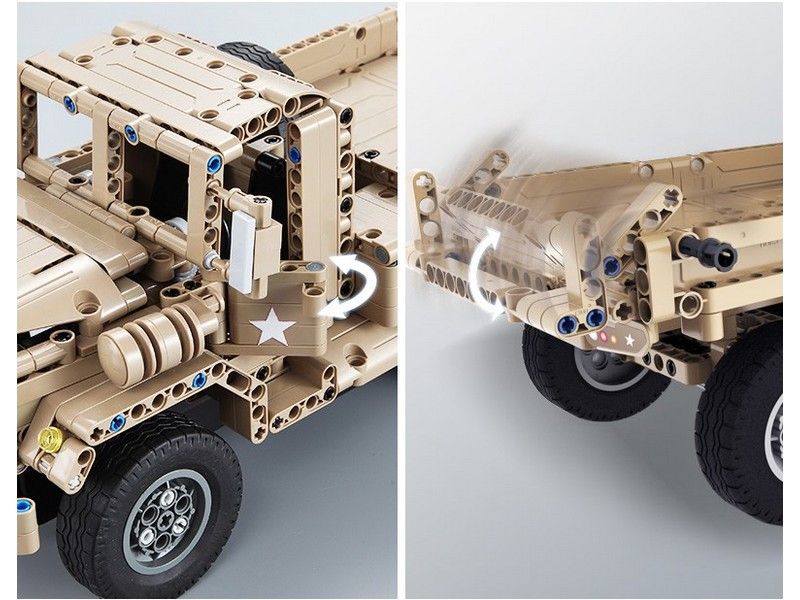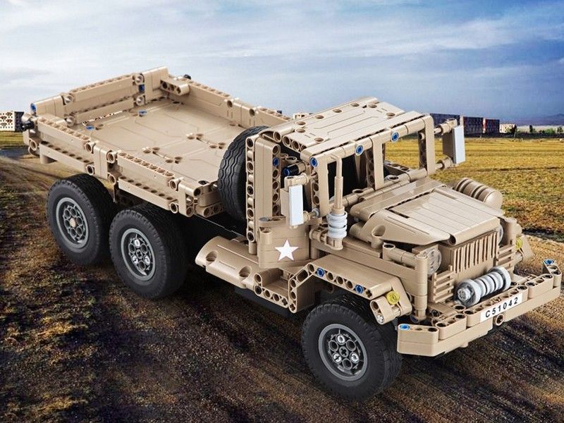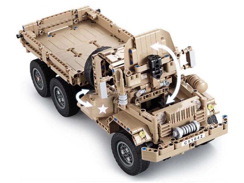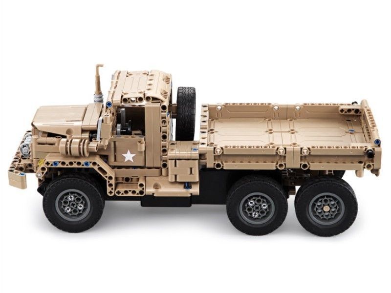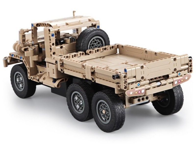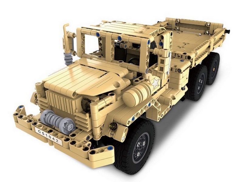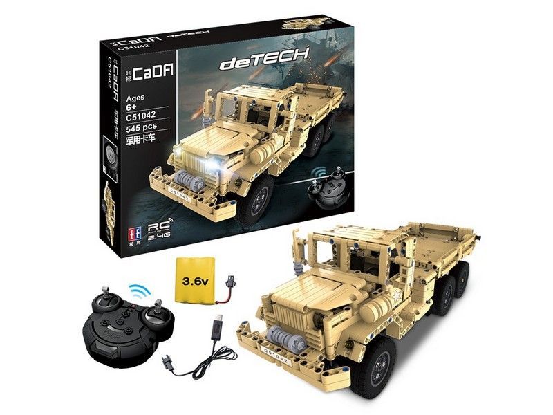 Детский конструктор CaDa Technic C51042W представляет собой набор для постройки военного грузовика на радиоуправлении и содержит 545 деталей! Помимо деталей корпуса, в комплект входят колеса, электродвигатель, плата управления, аккумулятор с зарядным устройством и пульт! Детали в наборе отлично подогнаны друг к другу, поэтому сборка не вызовет трудностей, а собранная машинка не развалится во время игры. У собранной модели очень много подвижных деталей: открываются двери, капот, борт кузова!