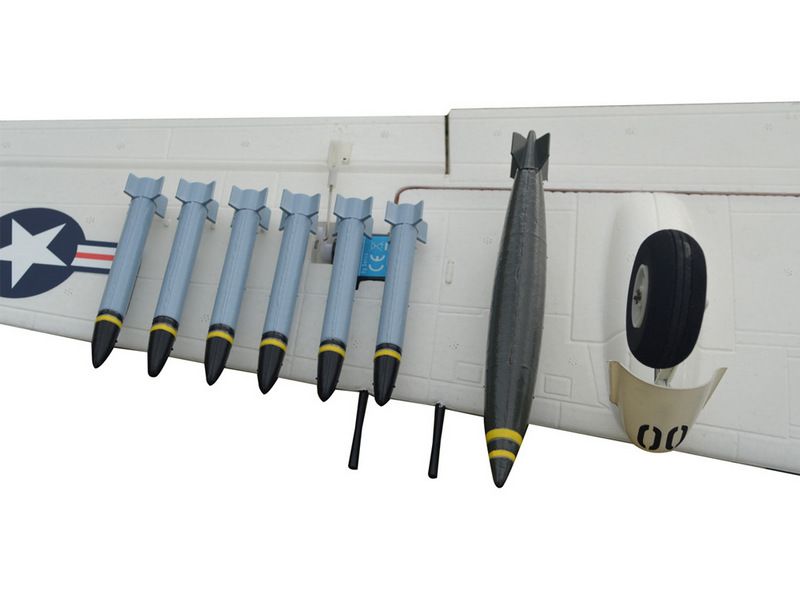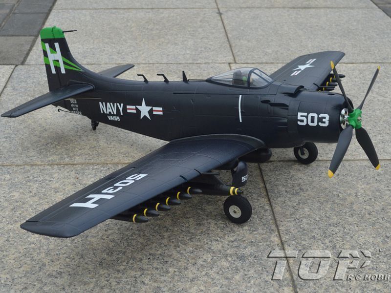 Радиоуправляемый самолет A1 Sky Raider от Top RC – точная копия известного американского штурмовика, который был способен нести большой запас боеприпасов и причинять значительный урон войскам своего врага. Копия настолько приближена к оригиналу, что содержит миниатюрные навесные ракеты, баки, и даже пилота в детализированной кабине. Летные характеристики также не уступают оригиналу. A1 Sky Raider способен выполнять любые фигуры 3D пилотажа, в основном заслуга лежит на пропеллере с четырьмя лопастями, который обеспечивает отличную тягу двигателя.