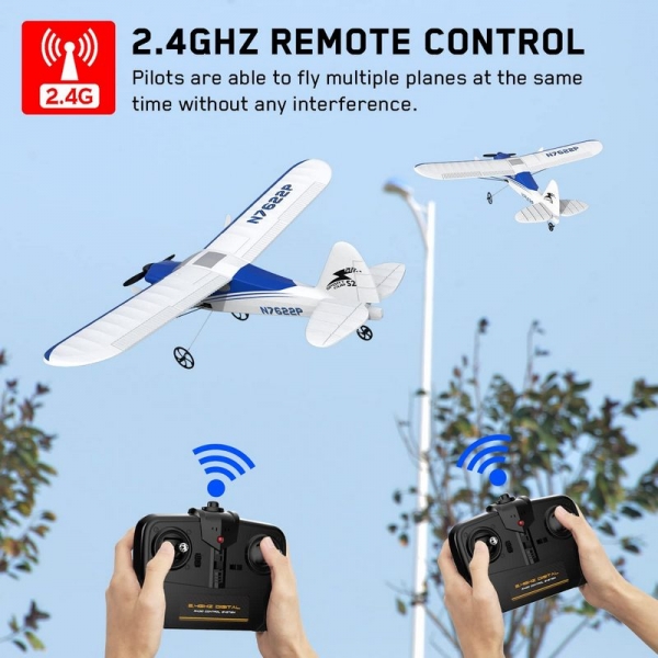 - С аппаратурой 2,4 ГГц позволяет нескольким самолетам летать одновременно без каких-либо помех друг другу. Вы можете устроить летное соревнование с друзьями или семьей, чтобы получить больше удовольствия.