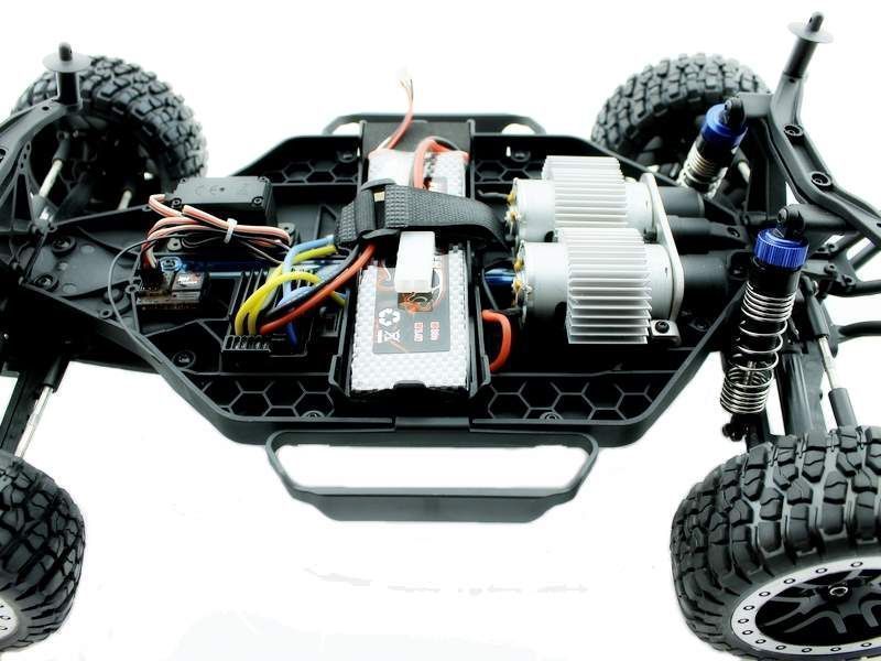 Модель спроектирована на основе уникального модульного шасси, что позволило совместить превосходные ходовые характеристики с простотой обслуживания. Большие резиновые колеса из резины, что повышает сцепление и гарантирует износостойкость и устойчивость даже на самых неожиданных участках трассы.
