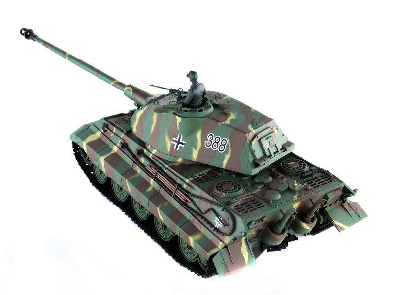 Радиоуправляемый танк German King Tiger Porsche Turret (Королевский тигр с башней типа Porsche) изготовлен в точном соответствии с известным немецким тяжелым танком, имеет прекрасно детализированный корпус с множеством дополнительных навесных аксессуаров.