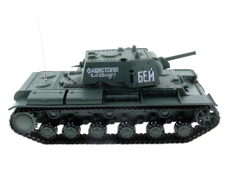 Модель КВ-1 — это настоящая коллекционная модель советского танка, участвовавшего в сражениях во времена Второй мировой войны. Танк в точности повторяет оригинал, имеет навесное оборудование. На танке даже нанесена надпись «Бей фашистскую гадину», которую наносили на корпус в Великую Отечественную войну.