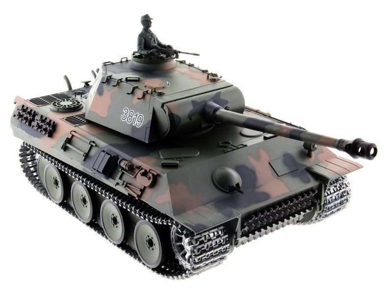 Радиоуправляемый танк Heng Long Panther — это высокодетализированый радиоуправляемый танк, максимально приближенный к своей реальной копии немецкого танка. Оснащен пневматической и ик-пушками. Танк Heng Long Panther совершает движения вперед и назад на 2-х скоростях, разворот на 360, вращающаяся башня с поднимающимся-опускающимся дулом.
