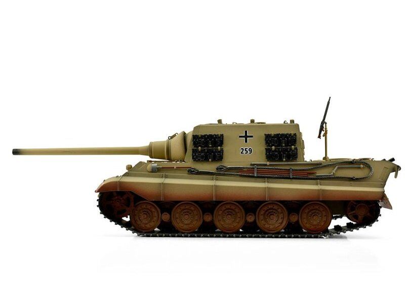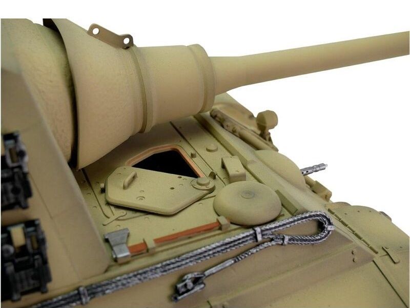 Радиоуправляемый танк Torro Jagdtiger в масштабе 1:16 с инфракрасной пушкой, дымовыми и звуковыми эффектами - полностью функциональная модель, имеющая высокий уровень детализации и металлические компоненты.