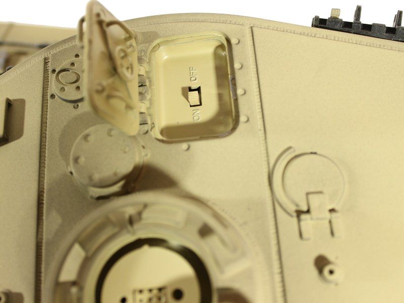 Модель полностью готова к работе, филигранно раскрашена и имеет все необходимые аксессуары для эксплуатации. ВВ-пушка, выхлопные трубы оборудованы дым - системой, движение модели сопровождается звуковой имитацией работы двигателя! На модели светятся фары, ствол откланяется вверх/вниз. Работающая подвеска катков, лязг гусениц заставляют поверить в реальность происходящего!