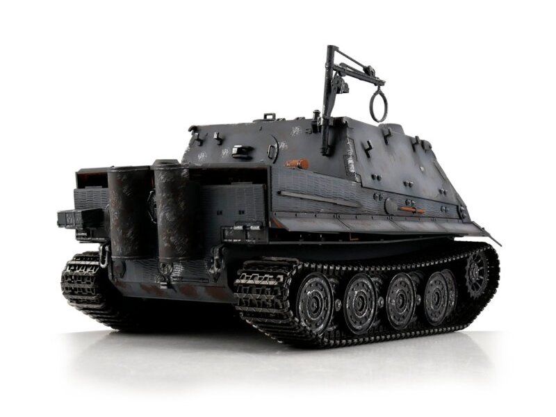 Радиоуправляемый танк Sturmtiger размером примерно 390x230x190 мм идеально подходит для требовательных модельеров. При разработке особое внимание было уделено деталям, чтобы максимально приблизить внешний вид модели к оригиналу. Проработанный до мельчайших подробностей, он впечатляет ручной аэрографией.