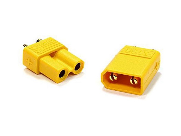 Разъемы серии XT30 обеспечивают надежное соединение, идеально подходящее для моделей с током потребления до 35 A. Разъемы изготовлены из высокотемпературного нейлона с использованием позолоченных контактов, которые были установлены в пресс-форму в момент литья и формирования разъема. Позолота - несомненный плюс с точки зрения защиты от окисления контактов. Внутри используются штыревые соединения диаметром 2мм. Разъемы серии XT30 будут незаменимы везде, где предполагается контакт непосредственно с аккумулятором.